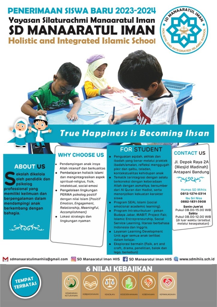 Pendaftaran SD Manaaratul Iman Holistic & Integrated Islamic School 2023-2024 Telah dibuka.
